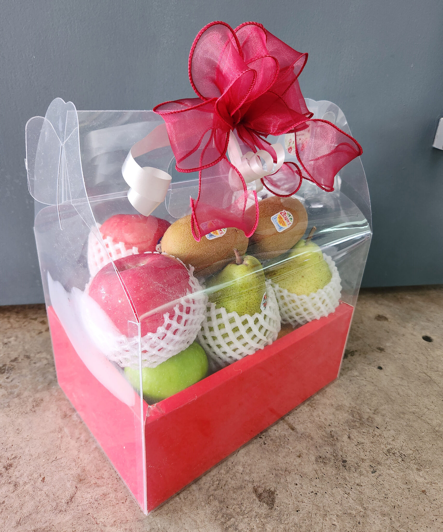 Lovely fruit box of 2 Red Apples and 2 Green Apples, 2 Pears, 2 Kiwi, a box of Grapes and a box of Blueberry.