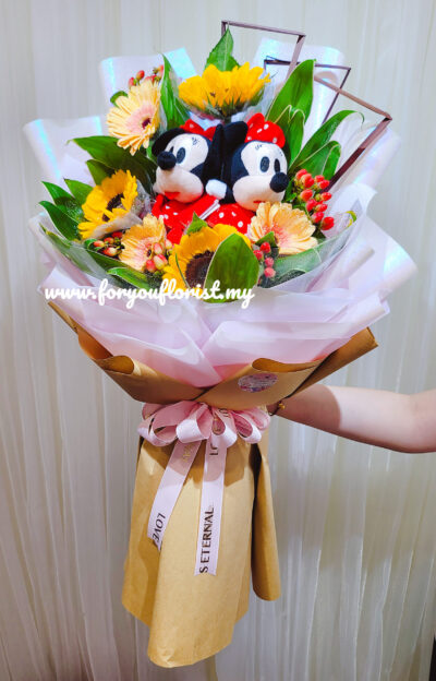 Lovely convocation bouquet of 5 Sunflowers with Baby Breath with a big size of approximate 8 inches height graduation bear.