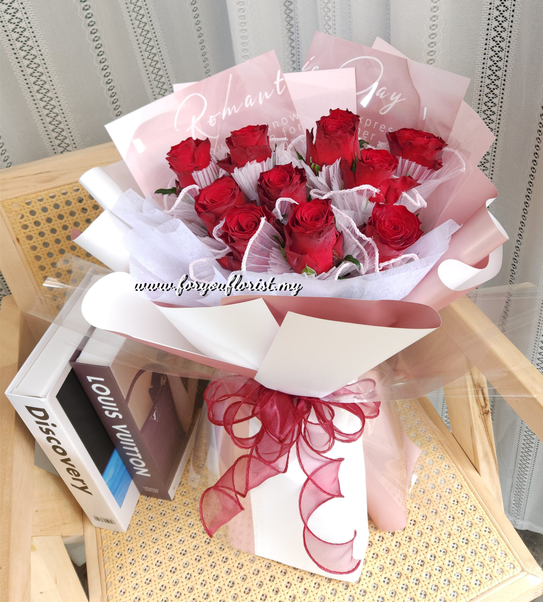 A lovely hand bouquet of 10 premium Red Roses with laces.